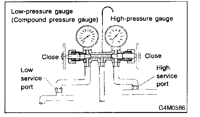 3. Close the valves on the low-/high-pressure sides of the manifold gauge set.