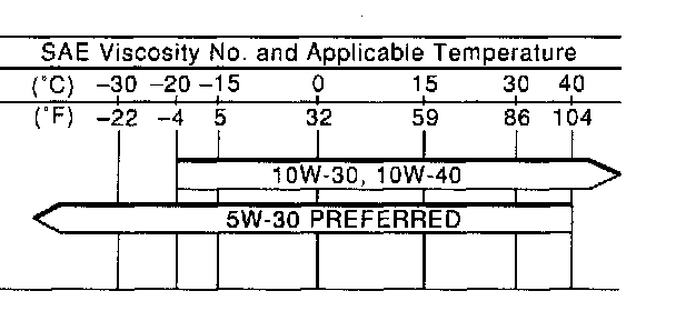 NOTE: If vehicle is used in desert areas with very high temperatures or for other heavy duty applications, the following viscosity oils may be used: