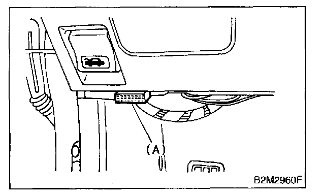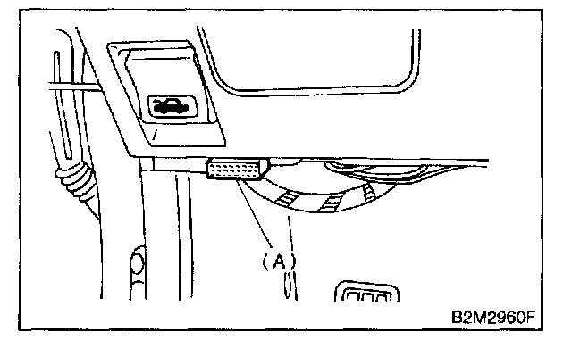 1. Connect Subaru Select Monitor to data link connector (A) located in the lower portion of the instrument panel (on the driver's side).