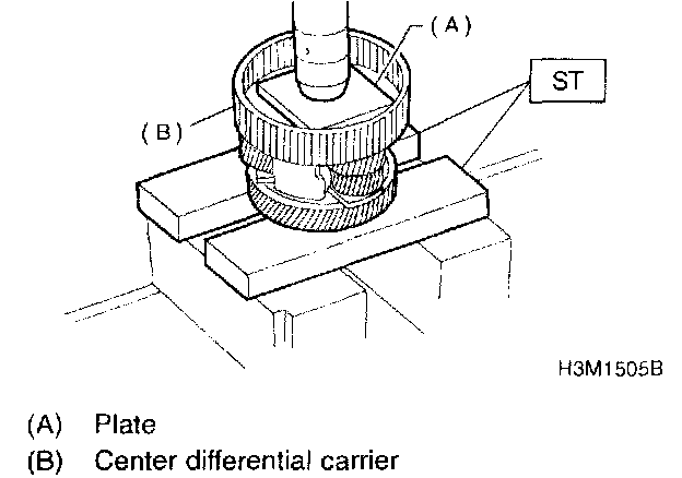3. Remove snap ring, and pull out shafts from center differential assembly.