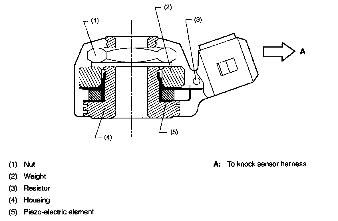 - In addition to a piezo-electric element, the sensor has a weight and case as its components. If knocking occurs in the engine, the weight in the case moves causing the piezo-electric element to generate a voltage.