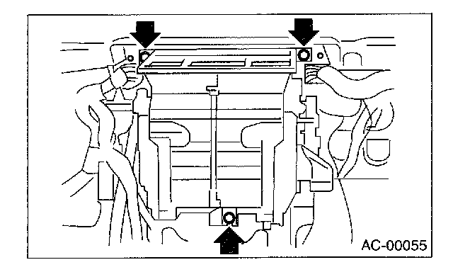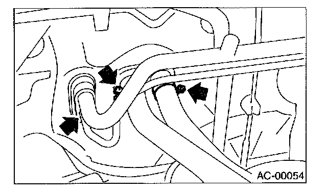 4. Remove the bolt securing expansion valve and pipe in engine compartment. Release the heater hose clamps in engine compartment to remove the hoses.