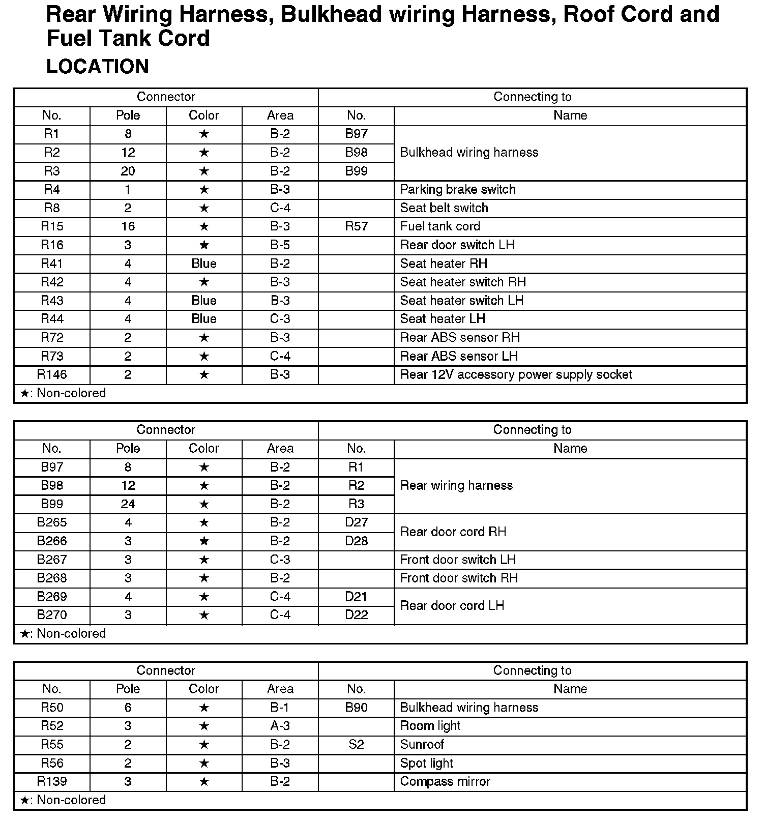 Rear Wiring Harness, Bulkhead Wiring Harness, Roof Cord and Fuel Tank Cord