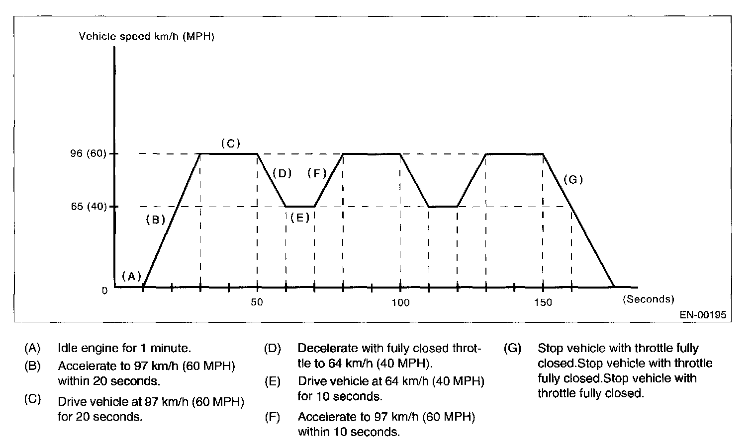 2. AFTER RUNNING 20 MINUTES AT 80 KM/H (50 MPH), IDLE ENGINE FOR 1 MINUTE.