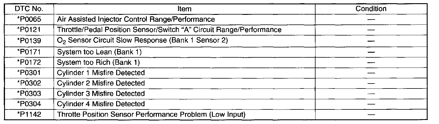 - Carry out the diagnosis which is marked * on DTC twice, then, after finishing first diagnosis, stop the engine and do second time at the same condition.