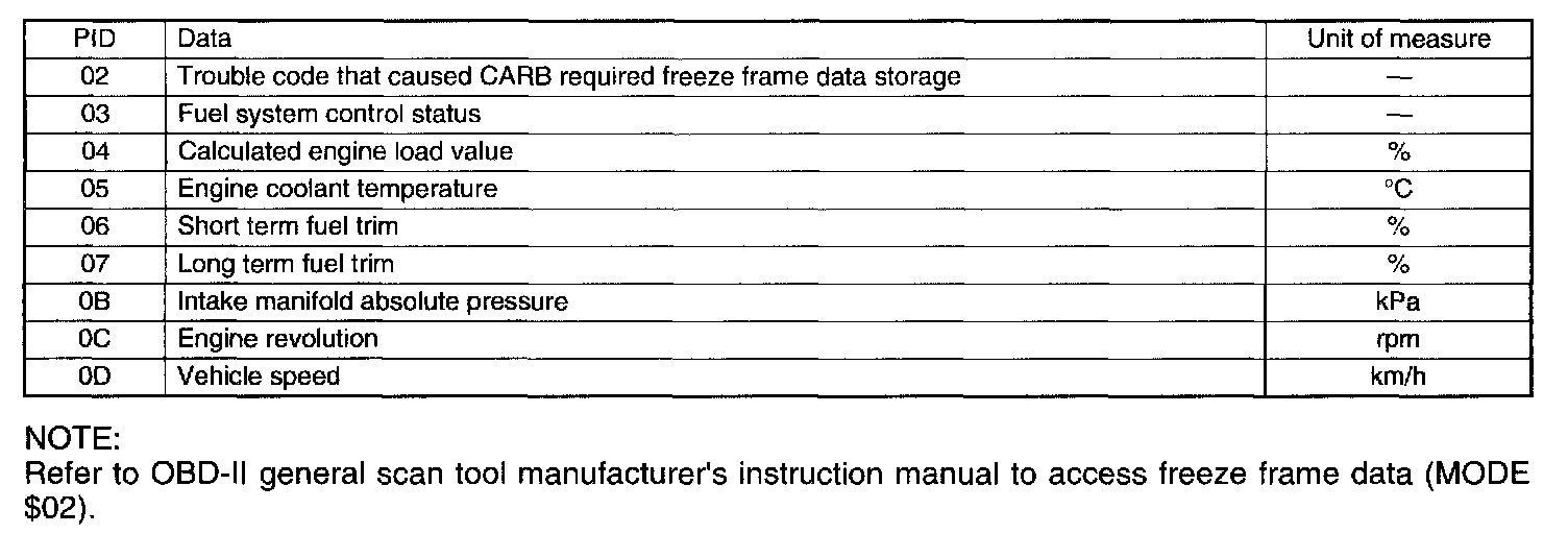 MODE $02 (POWERTRAIN FREEZE FRAME DATA)