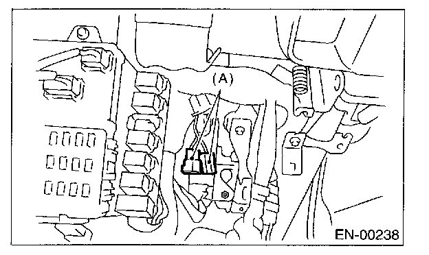 6. Connect the test mode connector (A) at the lower portion of instrument panel (on the driver's side).
