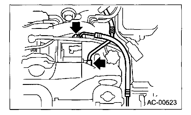 2. Replace the O-rings on low-/high-pressure hoses with new ones, then apply compressor oil.