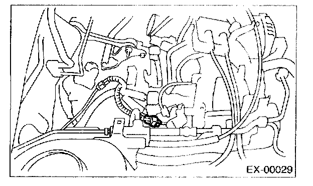 2. Disconnect the connector from engine hanger, and then disconnect the front oxygen (A/F) sensor connector