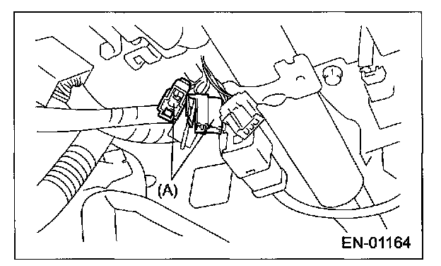 4. Connect the test mode connector (A) at the lower portion of the instrument panel (on the driver's side).