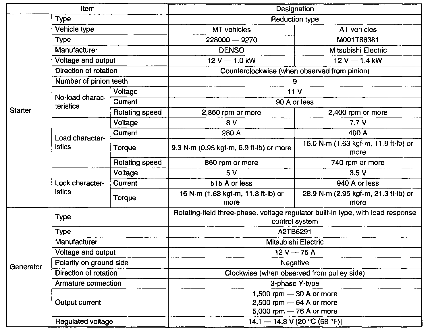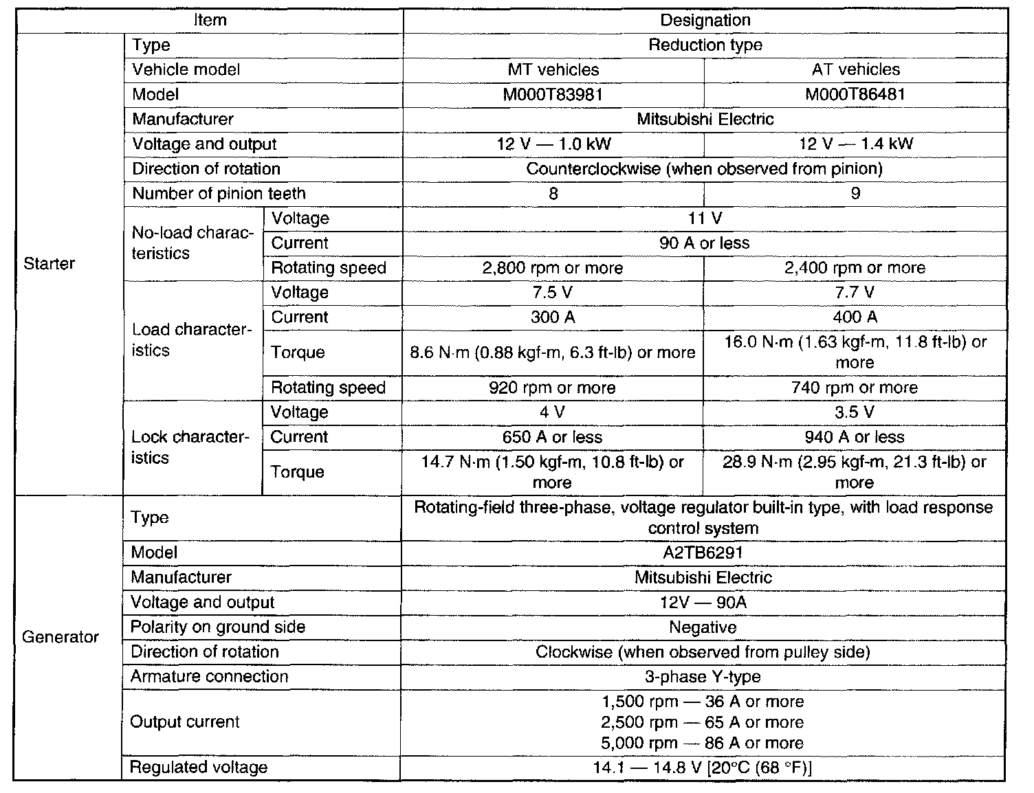 Specifications Non-Turbo Model: