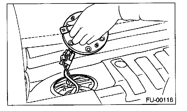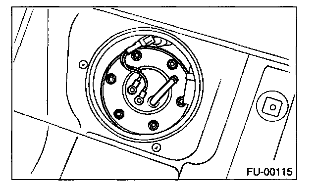 9. Remove the bolts which install the fuel sub meter unit on fuel tank.