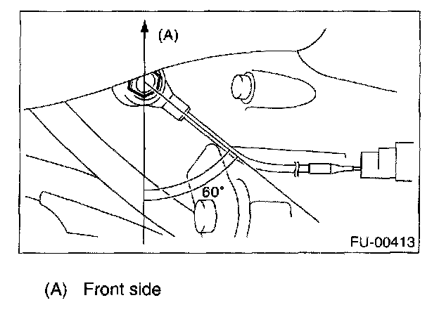 NOTE: The extraction area of the knock sensor cord must be positioned at a 60 ° angle relative to the engine rear.