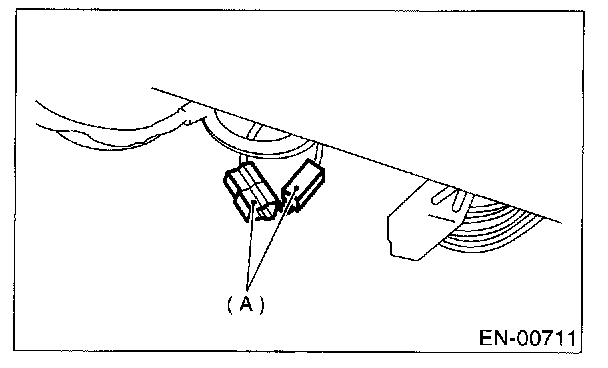 6. Connect test mode connector (A) at the lower portion of instrument panel (on the driver's side), to the side of the center console box.