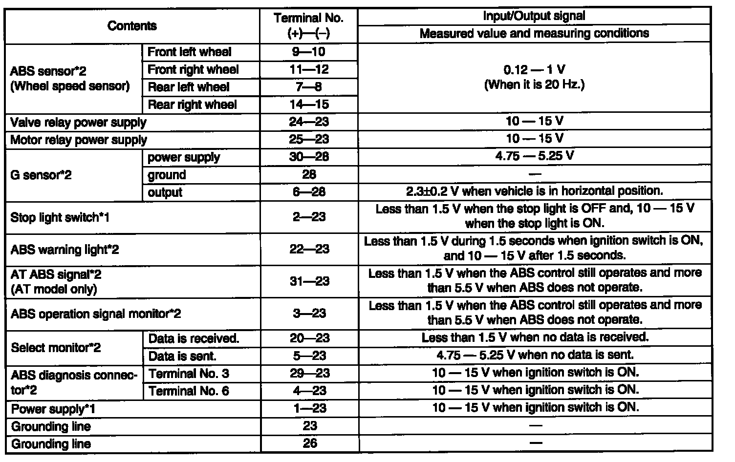 *1: Measure the I/O signal voltage after removing the connector from the ABSCM&H/U terminal.