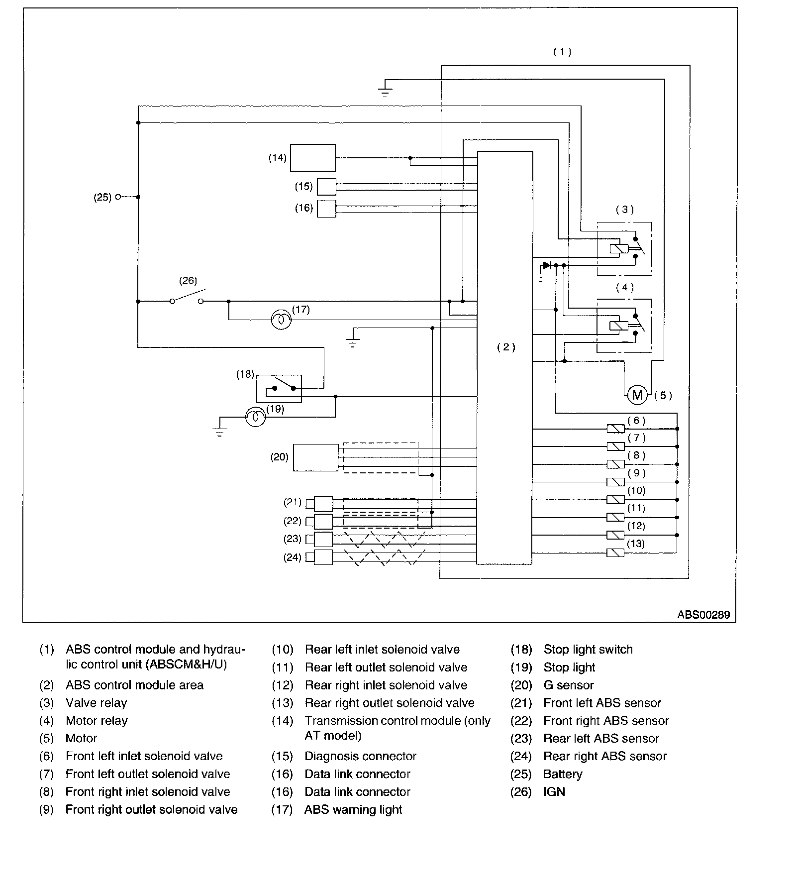 ^ When the connector is removed from the ABSCM&H/U, the connector switch closes the circuit between terminal No. 22 and No. 23. The ABS warning light illuminates.