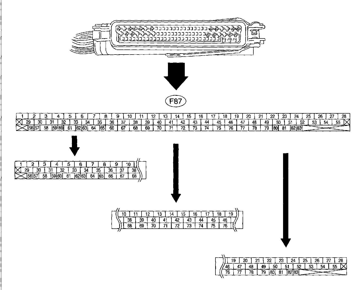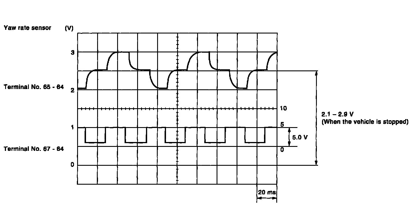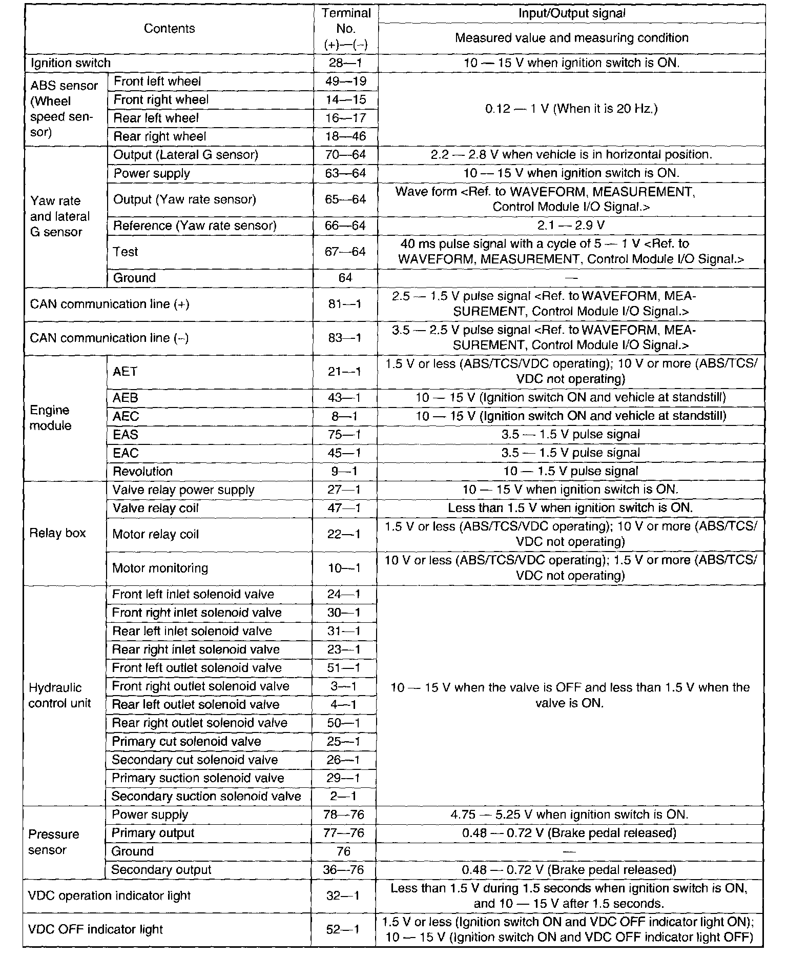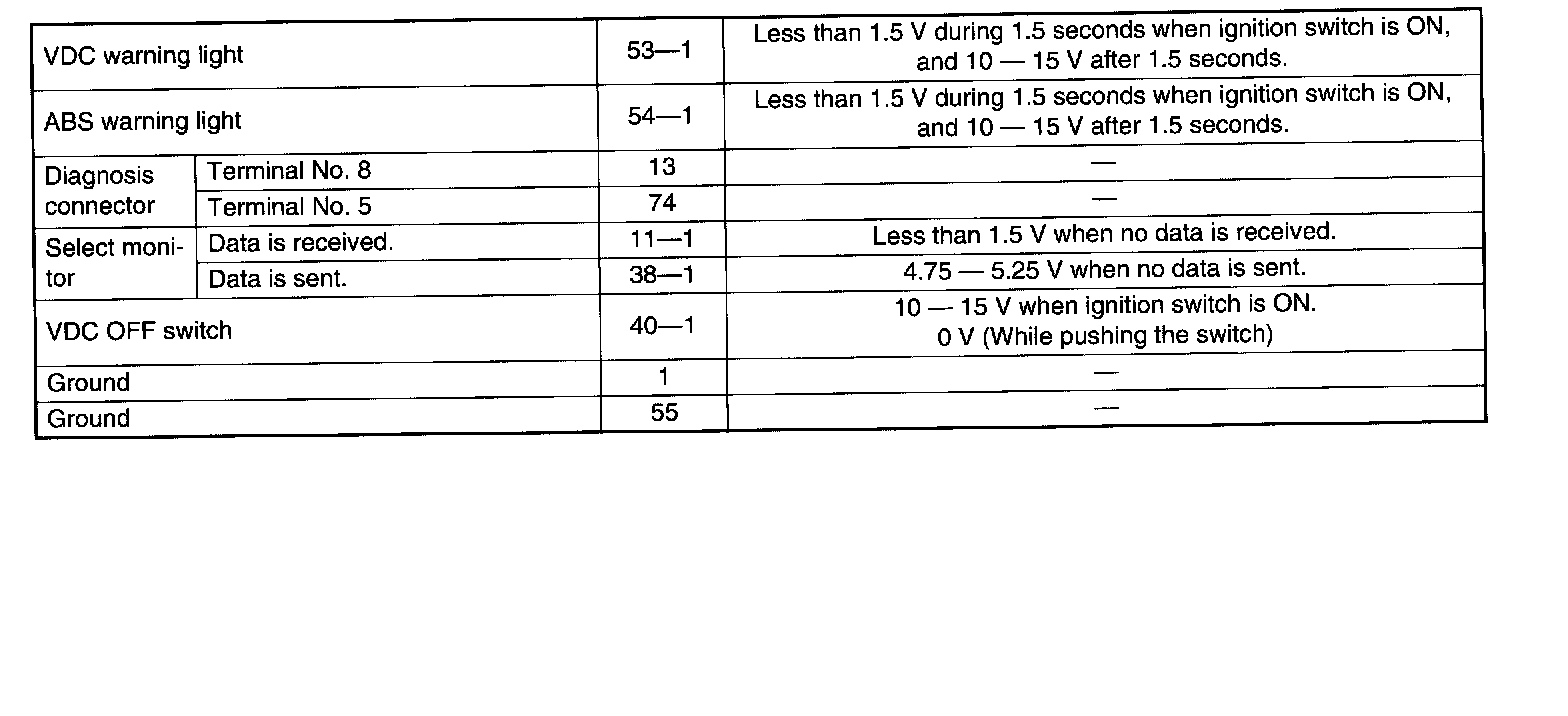 ^ When the connector is removed from the VDCCM, the connector switch closes the circuit between terminal No. 53, No. 54 and No. 55. The ABS and VDC warning light illuminate.