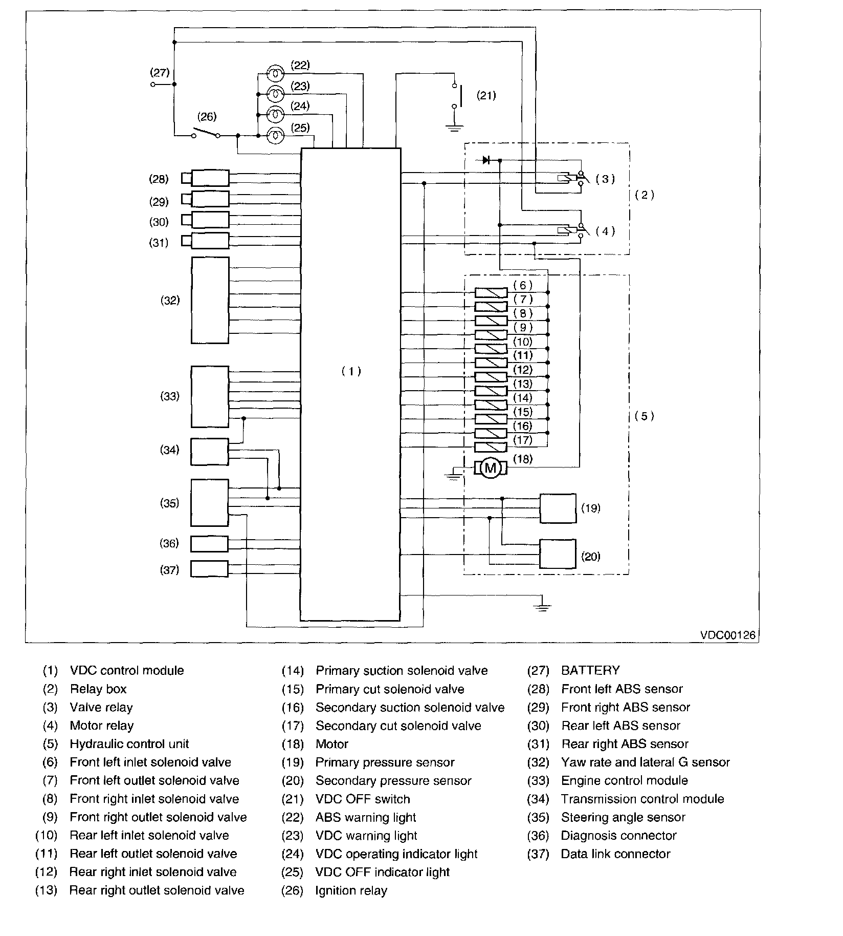 ^ The terminal numbers in the VDC control module connector are as shown in the figure.