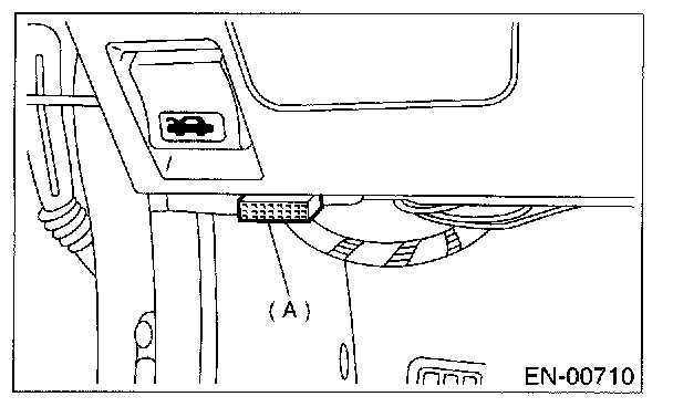 1. Connect Subaru Select Monitor to data link connector (A) located in the lower portion of the instrument panel (on the driver's side).