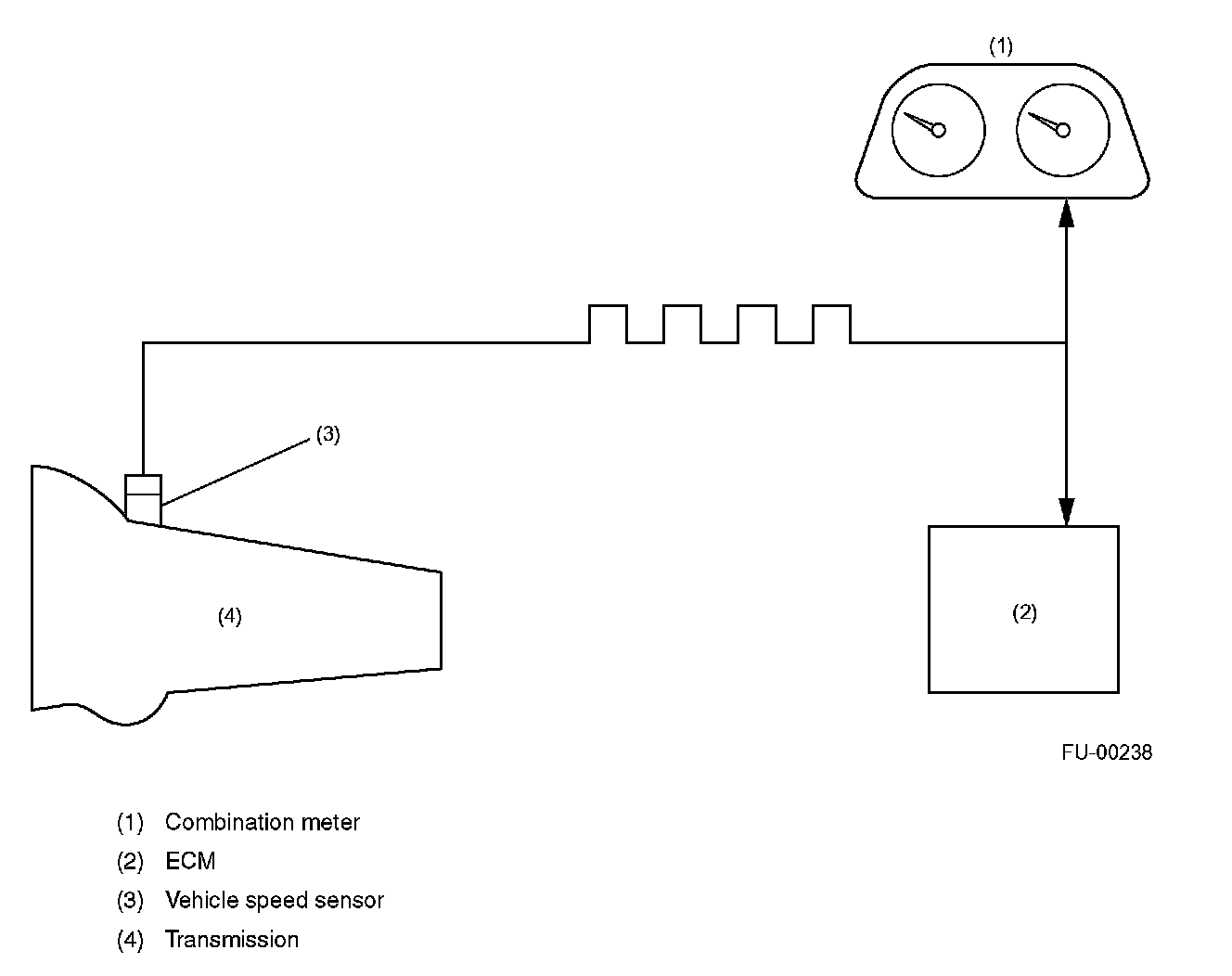 - The vehicle speed sensor generates a 4-pulse signal for every rotation of the front differential and send it to the ECM and the combination meter.