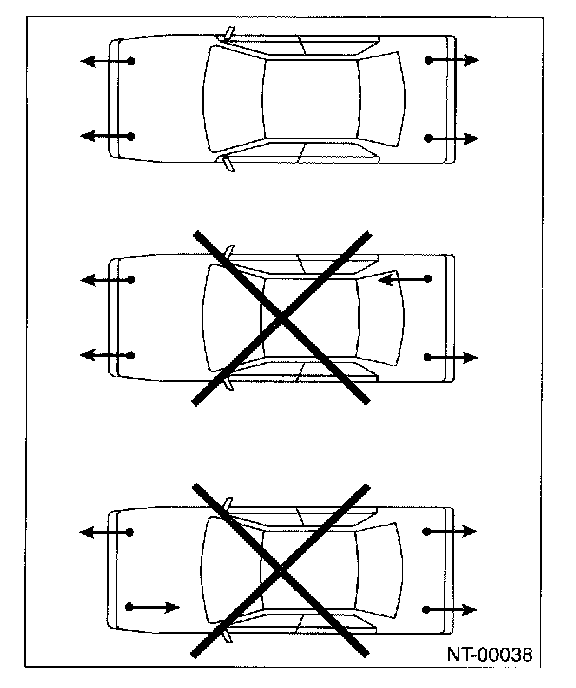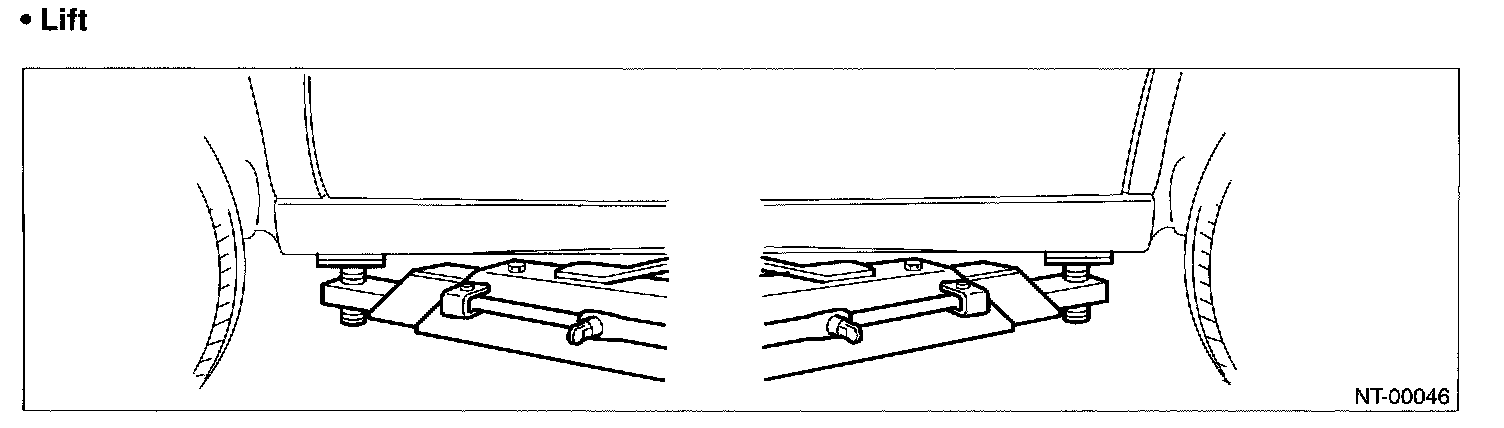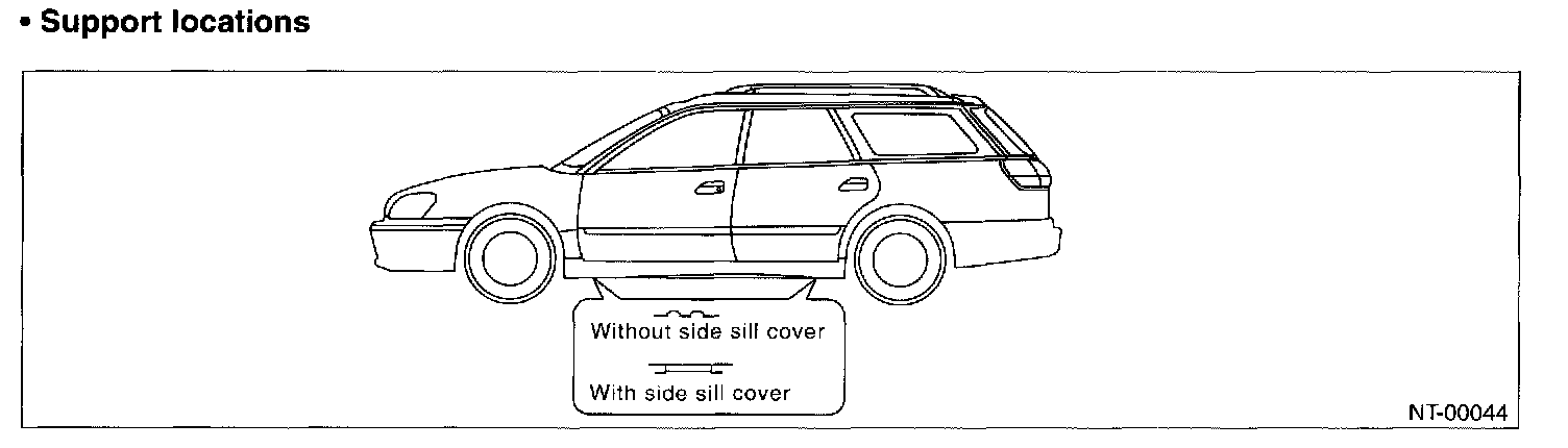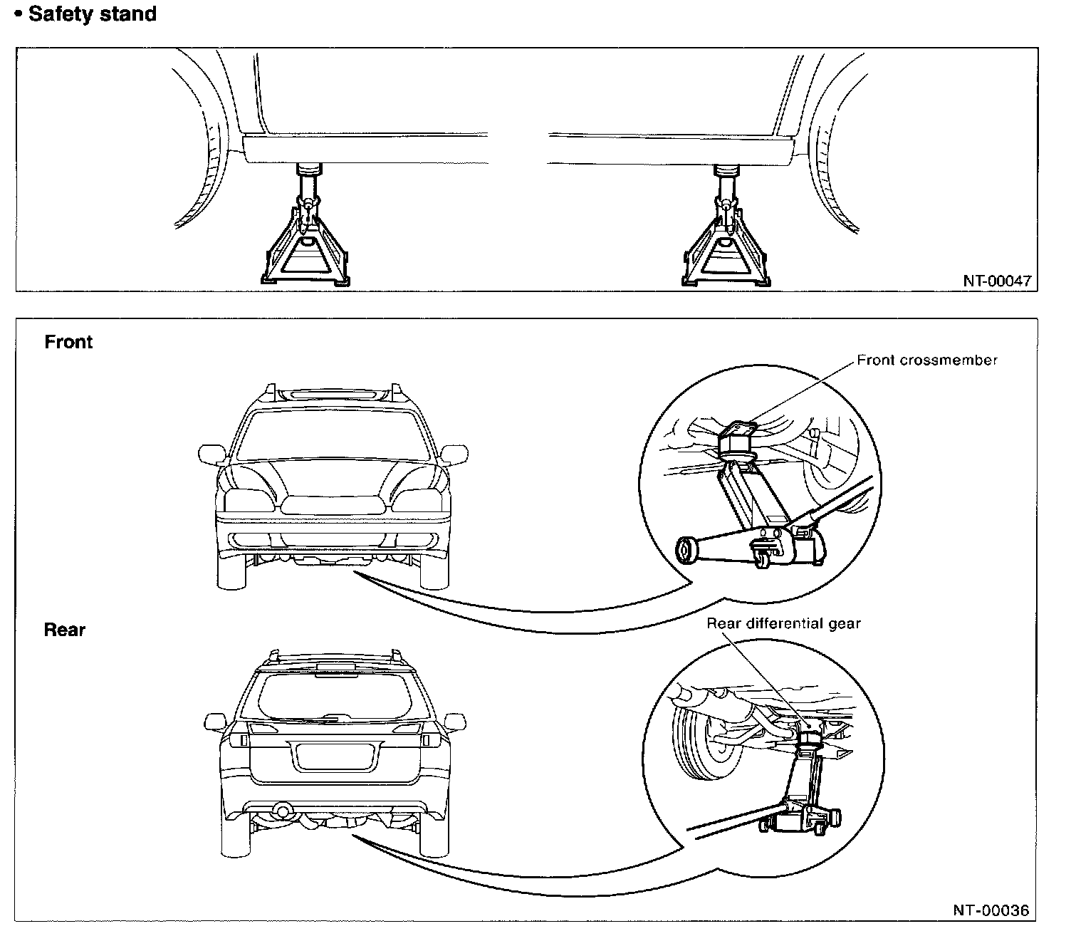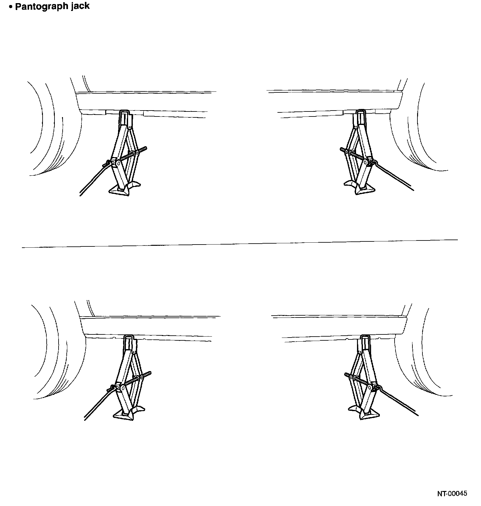When using a lift or jack-ridged rack to raise a vehicle, always follow instructions concerning jack-up points and weight limits to prevent the vehicle from falling, which could result in injury. Be especially careful to make sure the vehicle is balanced before raising it.