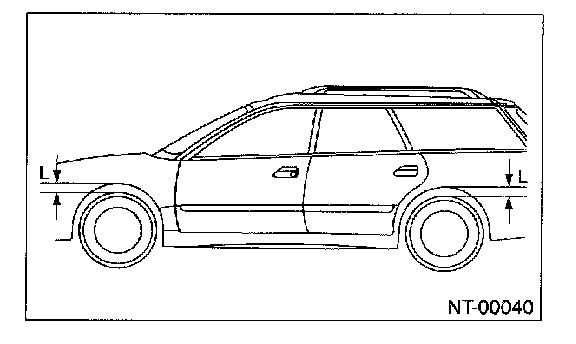 Measure distance L between tire highest point to arch highest point before tie-down and after tie-down. Difference of measurement value (drop height) shall be within 50.8 mm (2.00 in). Make sure to fix a vehicle securely.