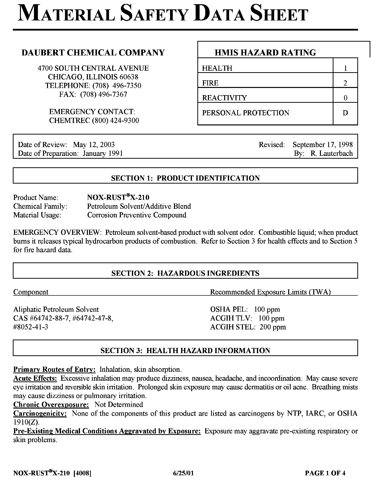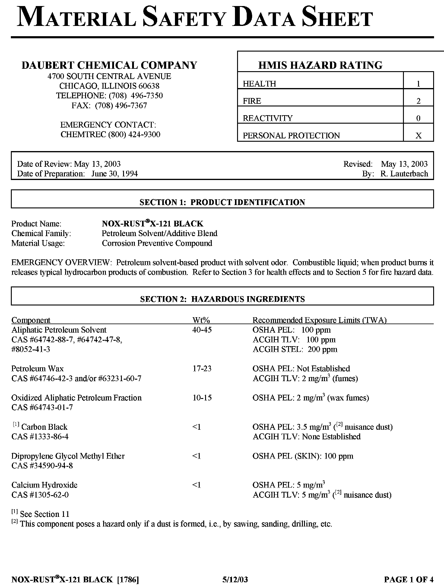 Material Safety Data Sheets (MSDS) for these products are included in each product carton and available in the electronic version.