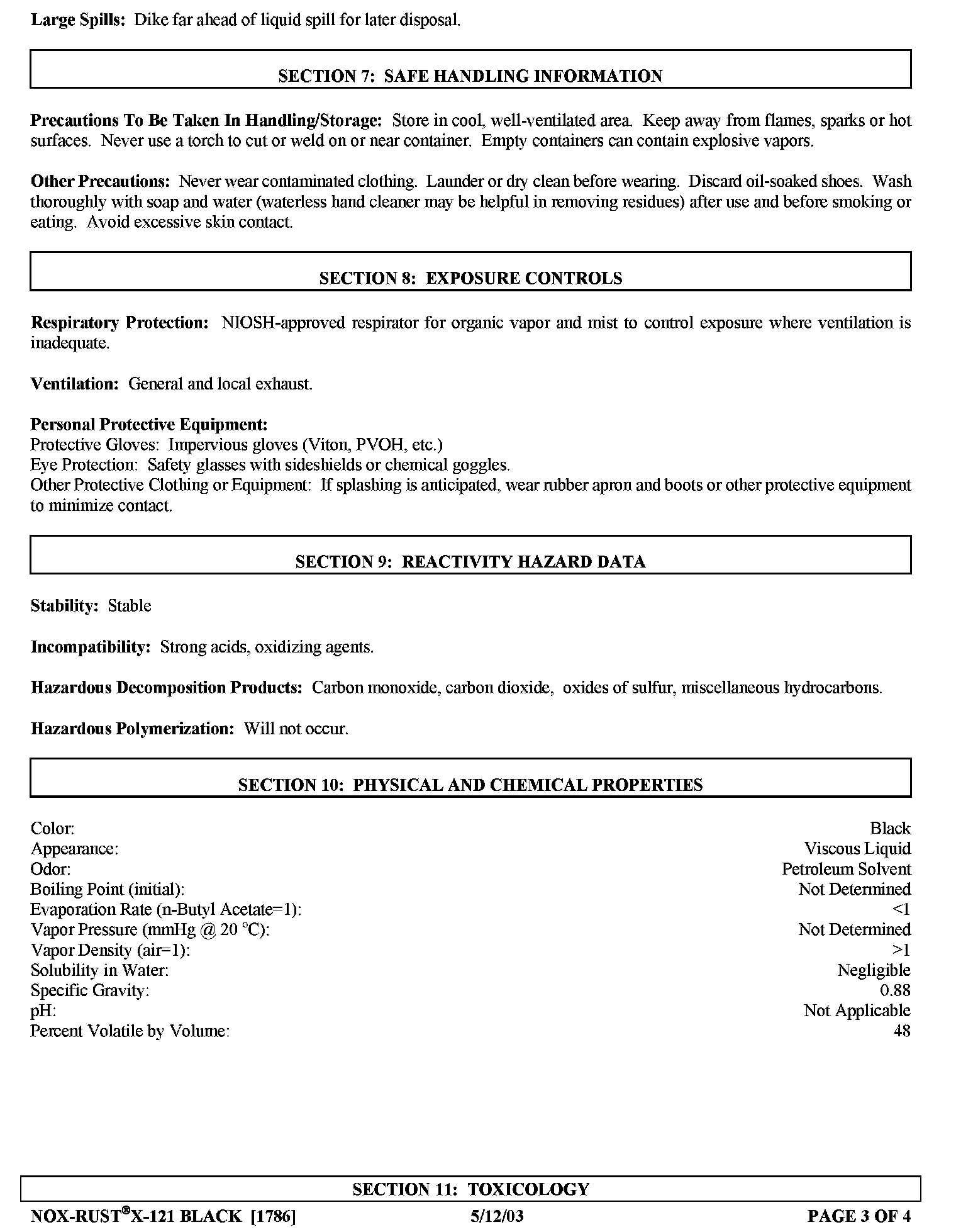 Settings For Nox-Rust(R) X-121 Black Corrosion Preventive Coating