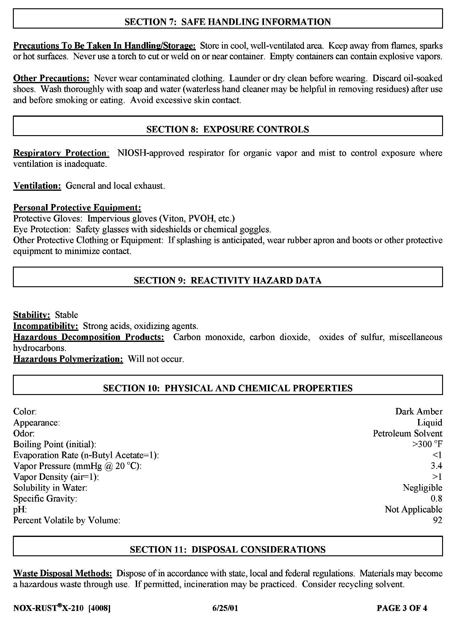 Settings For Nox-Rust(R) X-210 Corrosion Preventive Penetrant