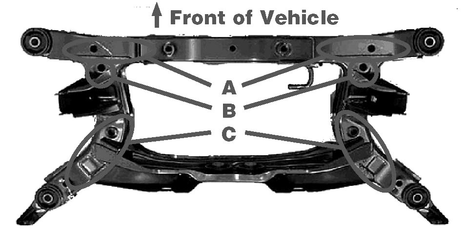 Step 3: Identify the component name of the rear sub-frame assembly as follows: