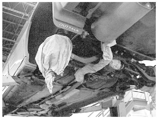 It is important that the rear sub-frame be properly cleaned in order for the rust proofing process to be effective. Use caution not to damage components such as emission lines.