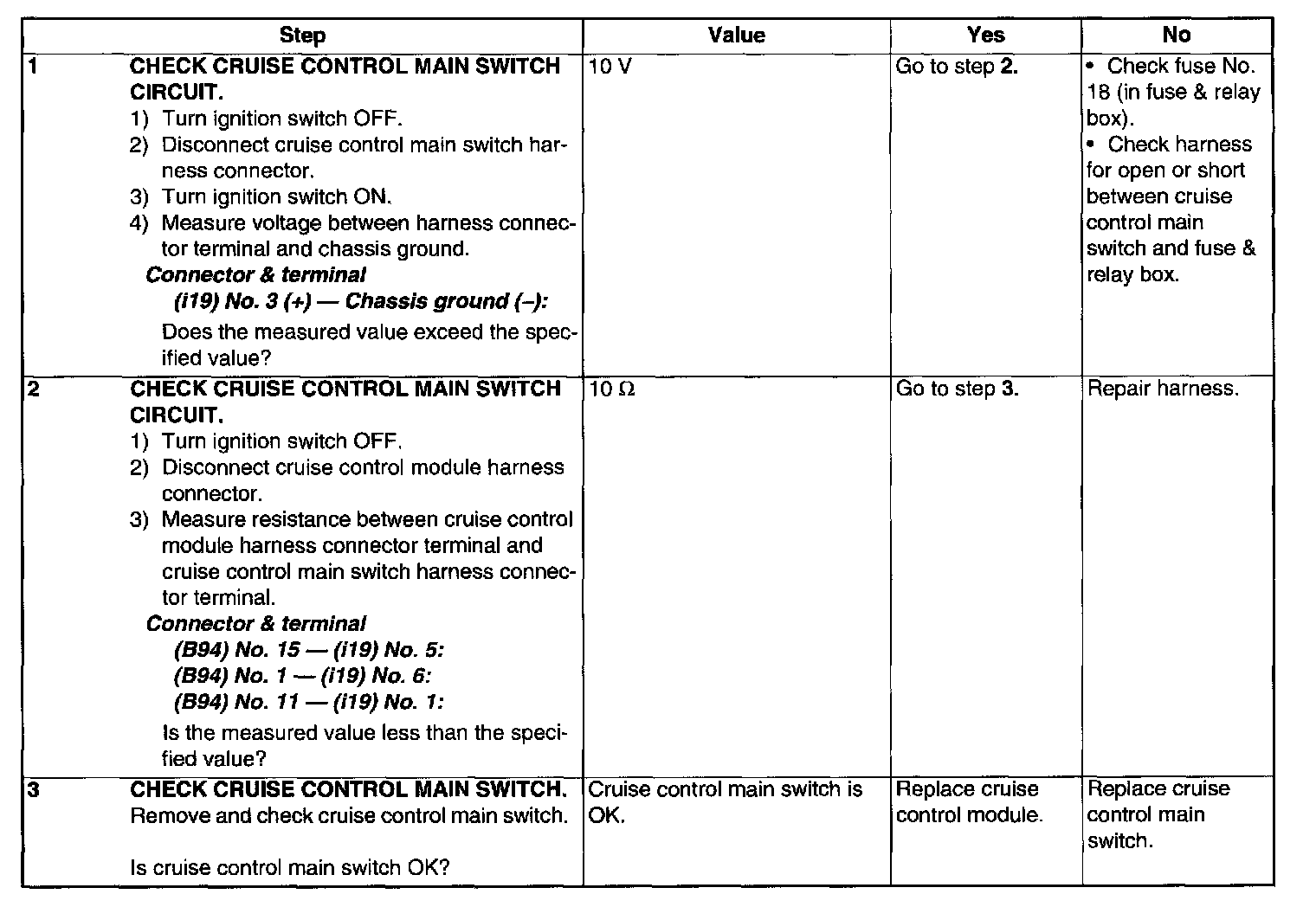 CHECK CRUISE CONTROL MAIN SWITCHTROUBLE SYMPTOM: