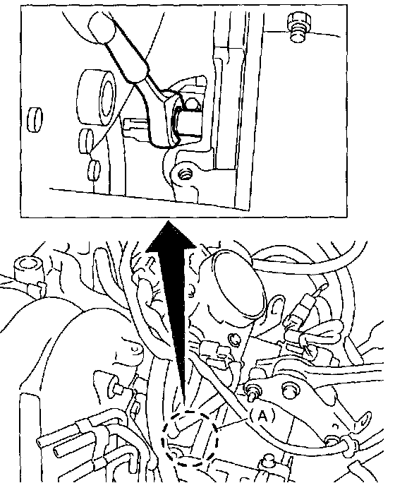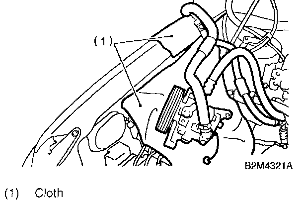 ^ Disconnect hose with its end wrapped with cloth to prevent fuel from splashing.