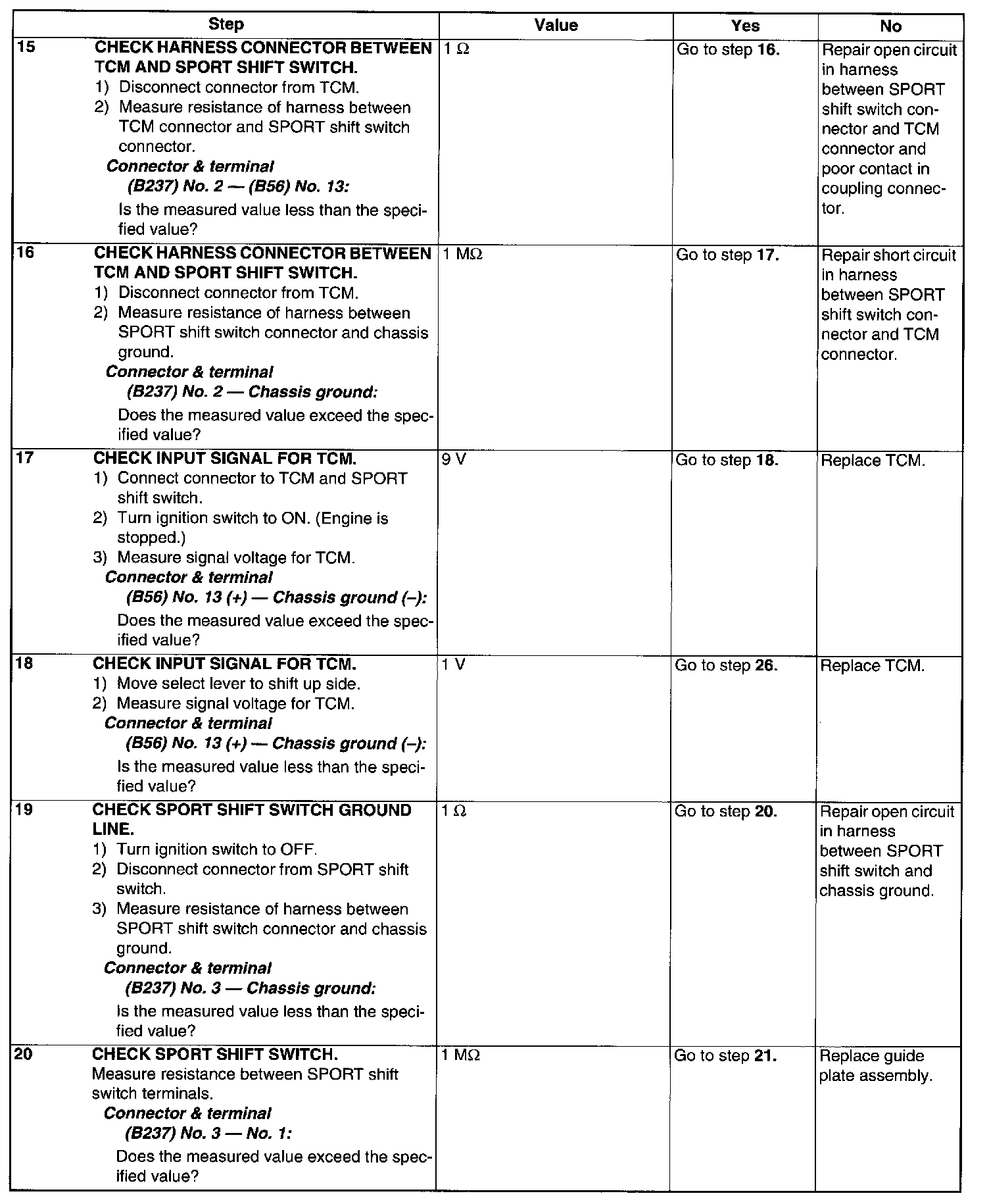 SPORT shift switch input signal circuit is open or shorted.