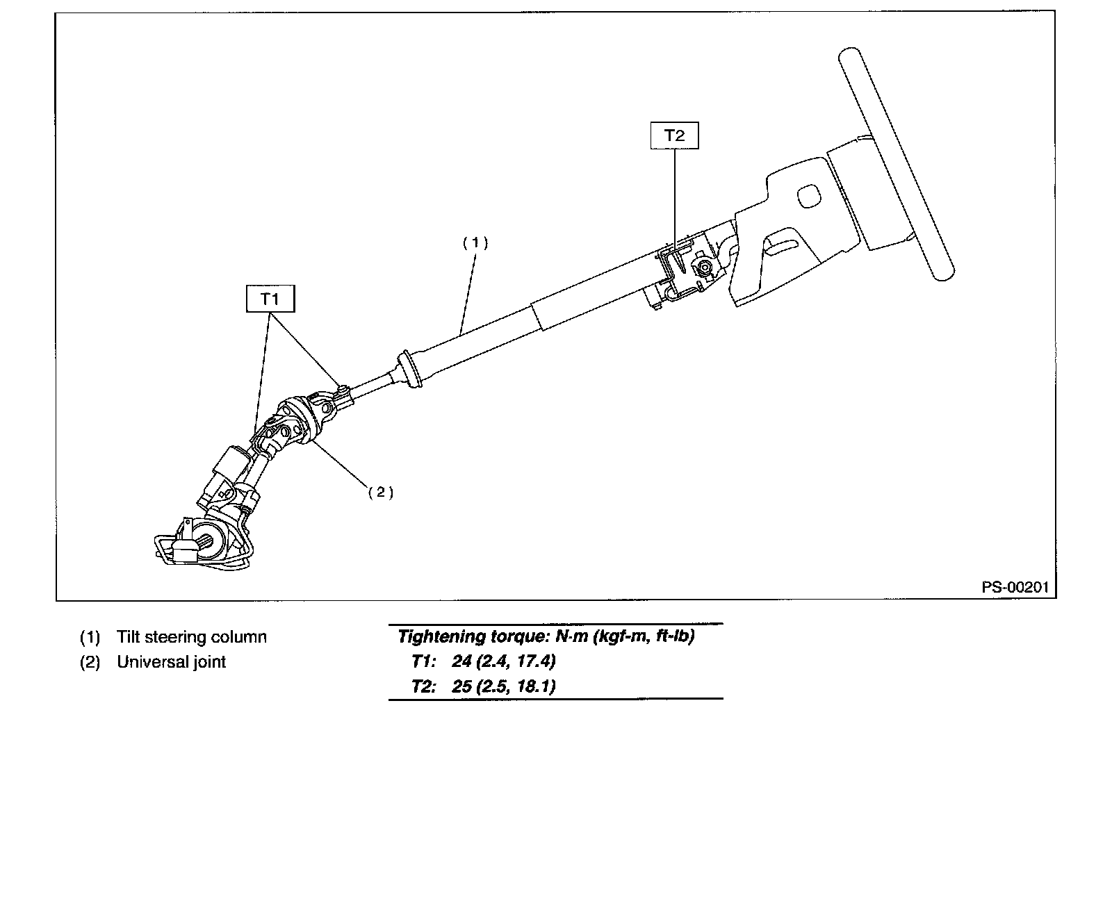 CAUTION: Be sure to remove universal joint before removing steering shaft assembly installing bolts when removing steering shaft assembly or when lowering it for servicing of other parts.