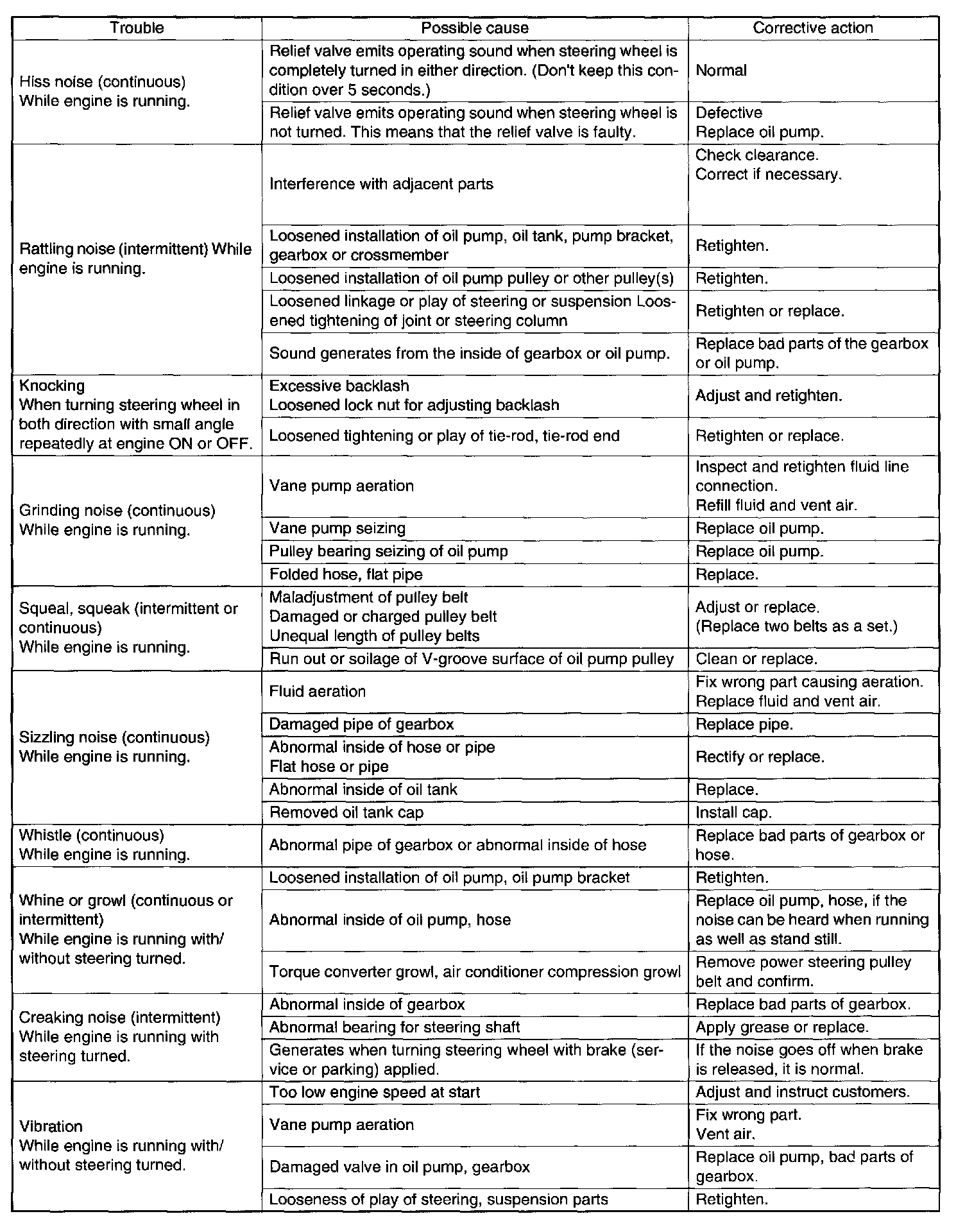 ^ Oil pump makes whine or growl noise slightly due to its mechanism. Even if the noise can be heard when steering wheel is turned at stand still there is no abnormal function in the system provided that the noise eliminates when the vehicle is running.