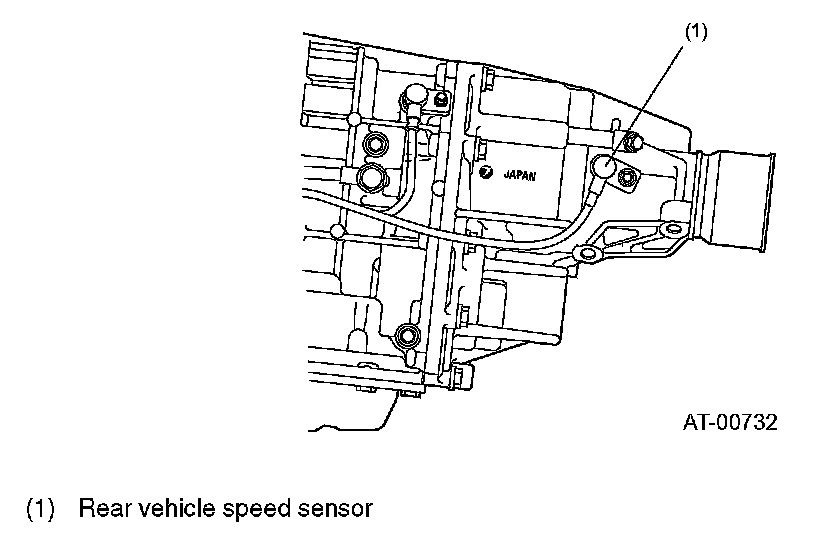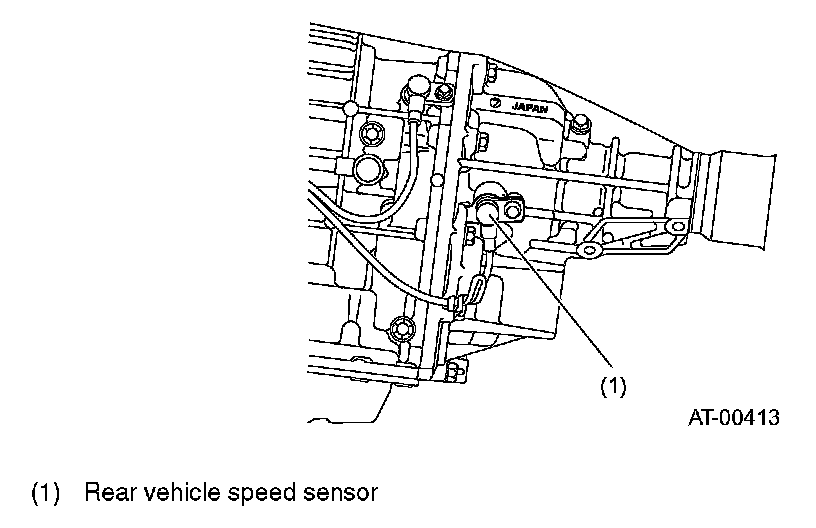 This vehicle speed sensor (output shaft speed sensor) is externally mounted on the extension case. It detects the rear wheel speed in terms of the peripheral speed of the rear drive shaft and sends sine wave signals (22 pulses per rotation) to the TCM.