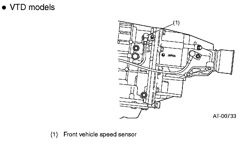 This vehicle speed sensor (output shaft speed sensor) is externally mounted on the transmission case.It detects the front wheel speed and sends sine wave signals (16 pulses per rotation) to the TCM.