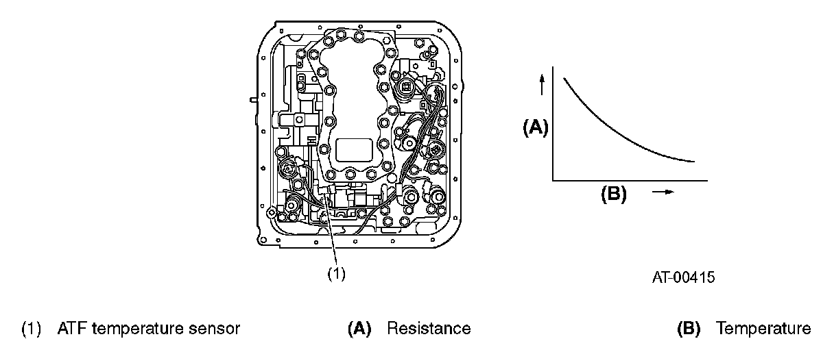 This sensor is mounted on the hydraulic control valve body of the transmission.It detects the temperature of ATF and outputs it as an electrical resistance signal.The output characteristics of the sensor are shown above.