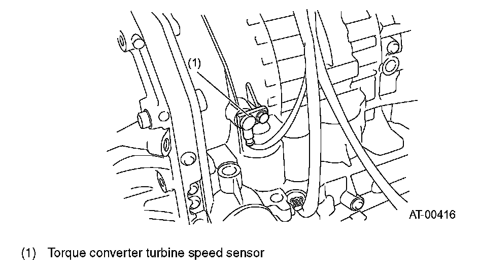 The torque converter turbine speed sensor (output shaft speed sensor) is externally mounted on the transmission case.