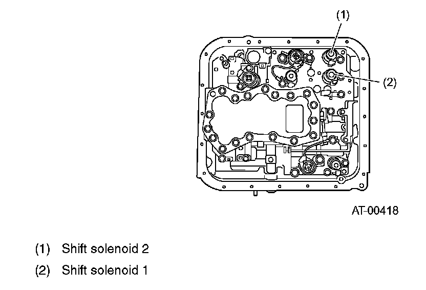 These solenoids are mounted on the transmission hydraulic control valve body.They are turned ON or OFF according to signals from the TCM.The gear positions are changed according to the ON and OFF condition of these solenoids.