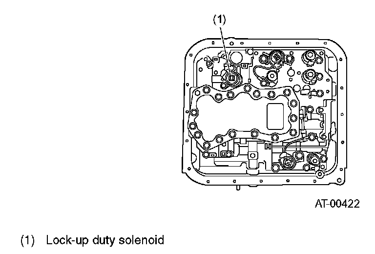 This solenoid is mounted on the transmission hydraulic control valve body.Its duty ratio is controlled by signals from the TCM. It then controls the lock-up control valve to provide smooth engagement and disengagement of the lock-up clutch.