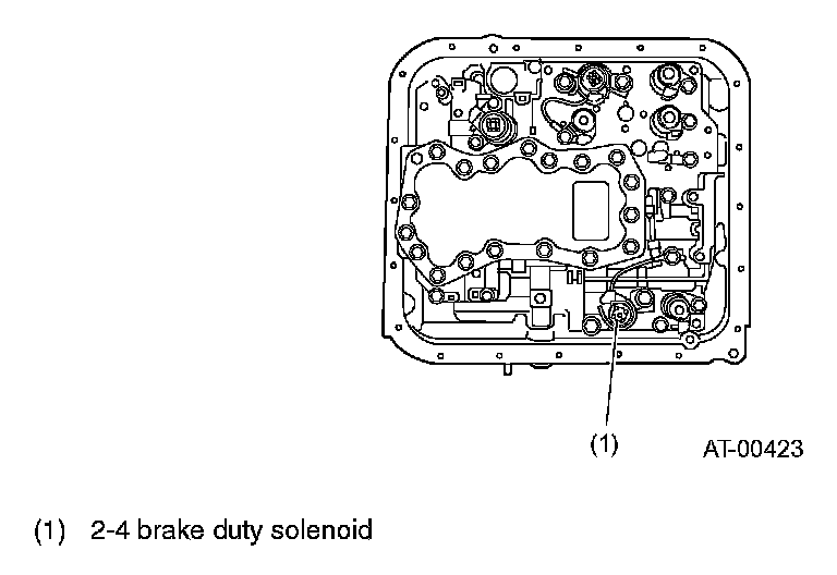This solenoid is mounted on the transmission hydraulic control valve body. Its duty ratio is controlled by signals from the TCM. It modulates the 2-4 brake pressure when the 2-4 brake is operated, reducing shifting shocks.