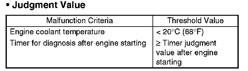 Time Needed for Diagnosis: To be determined. (It is varied by the Min. engine coolant temperature and engine conditions such as vehicle speed and engine coolant temperature.)