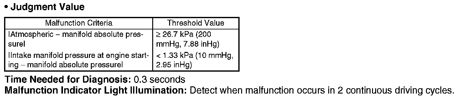 Detect the malfunction of atmospheric pressure sensor output property. Judge NG when the atmospheric pressure sensor output is largely different from the intake manifold pressure at engine starting.