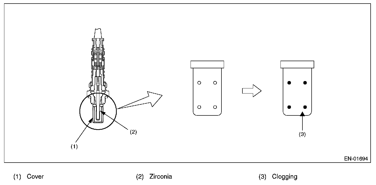 Detect time-lag of front oxygen (A/F) sensor response. Front oxygen (A/F) sensor cover has some ventilation holes for exhaust gas. Clogged ventilation holes are diagnosed. When the holes are clogged, the A/F output variation becomes slow comparing with the actual A/F variation because oxygen which reaches the zirconia layer is insufficient. Therefore, if the cover has clogged holes, the rich to lean judgment in ECM is delayed when the change from rich to lean is caused.