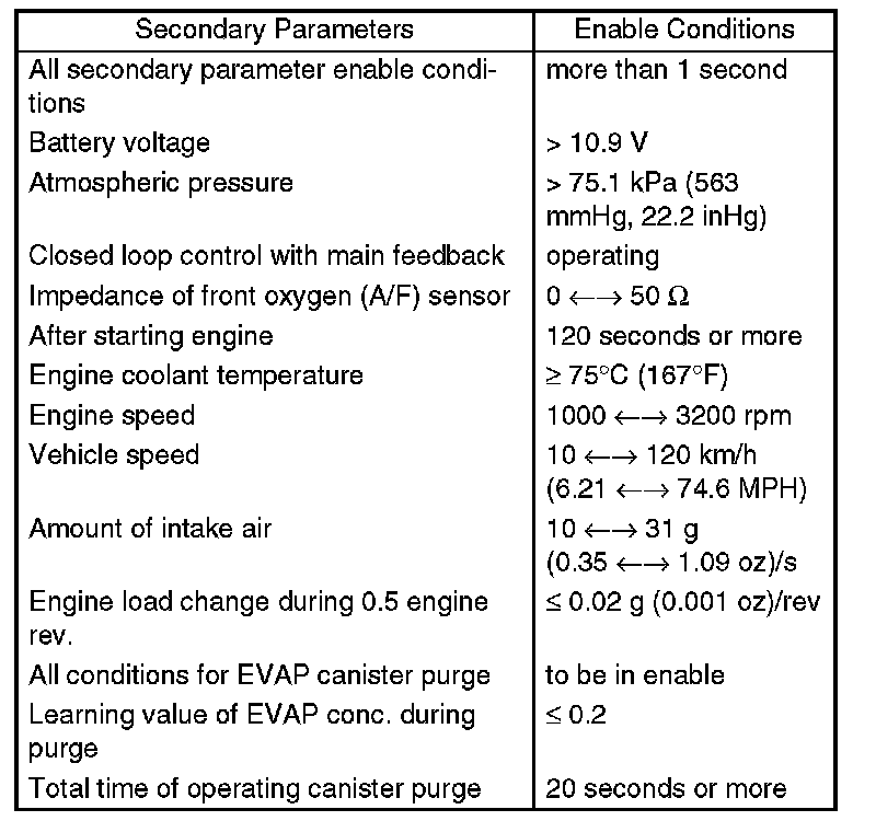 Perform diagnosis only once at a constant speed of 10 to 120 km/h (6.21 to 74.6 MPH) in 120 seconds after starting the engine.