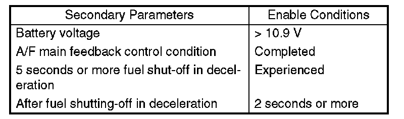 Perform the diagnosis only once when fuel shut-off in deceleration after rapid acceleration. (Pay attention to oxygen sensor voltage for the timing of deceleration in order to calculated the diagnostic value.)