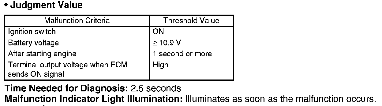 Judge NG when the continuous time of completing the malfunction criteria becomes more than 2.5 seconds.