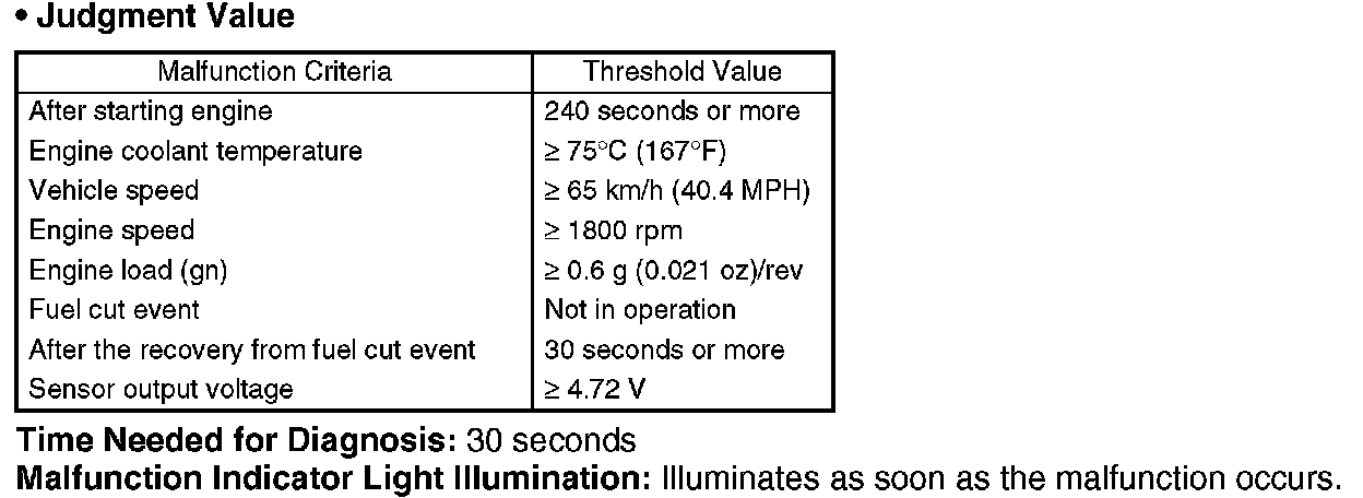 Judge NG when the cumulative time of completing the malfunction criteria becomes more than the time needed for diagnosis (30 seconds).